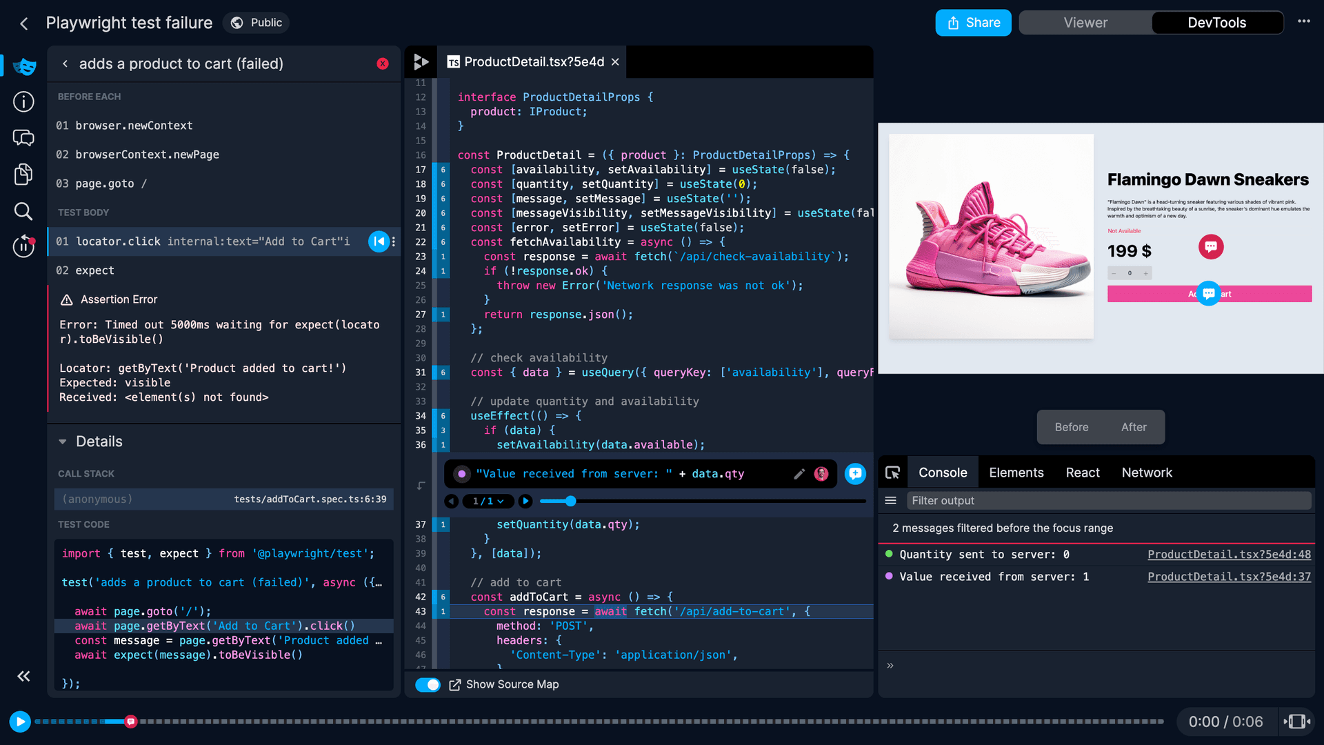 Check out this replay for a detailed walkthrough on debugging a flaky Playwright test.
